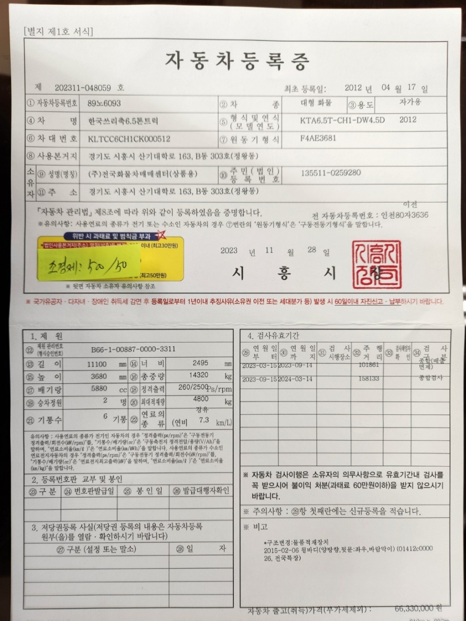 ■ 차량번호 : 89노6093