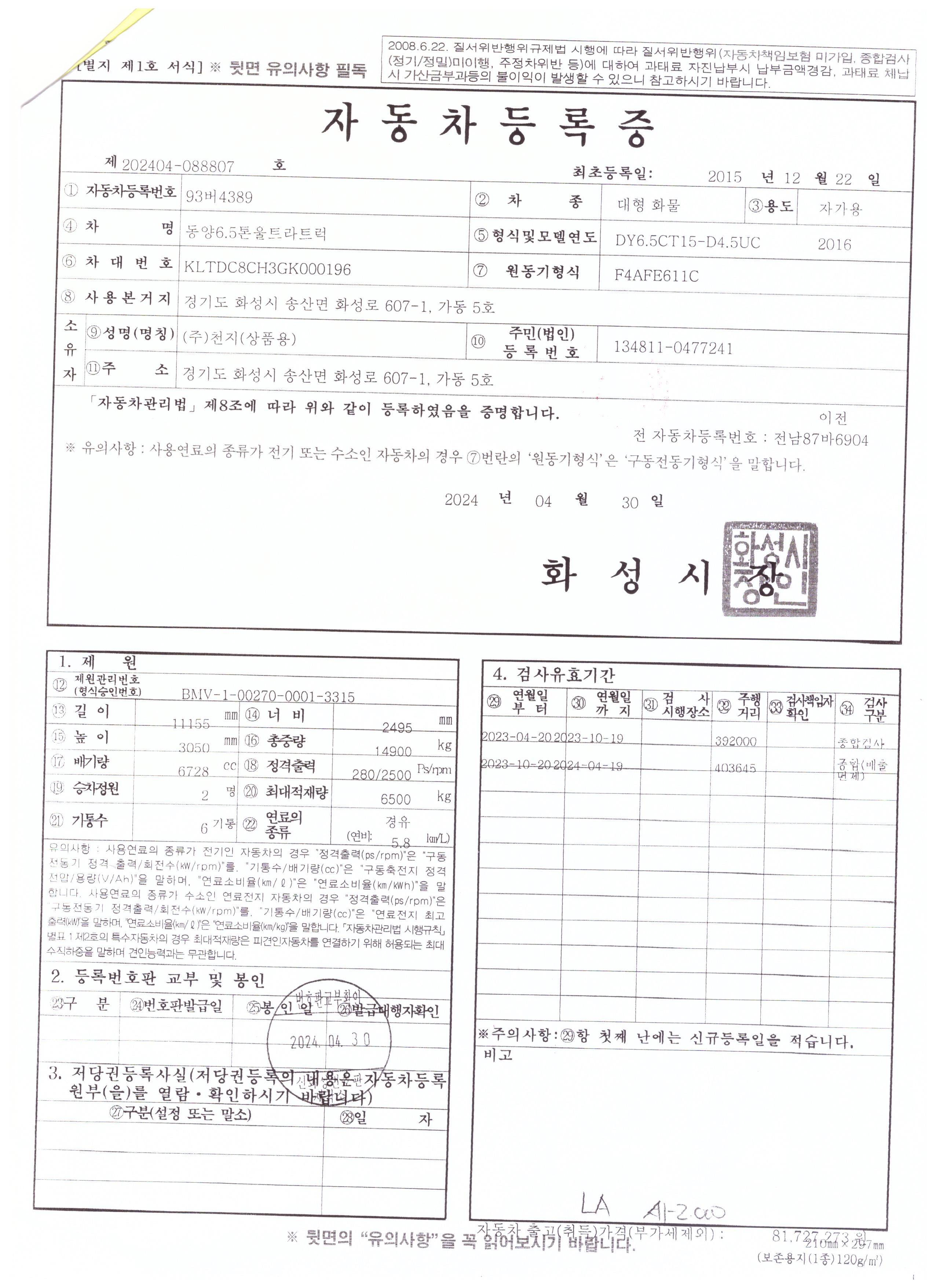 ■ 차량번호 : 93버4389