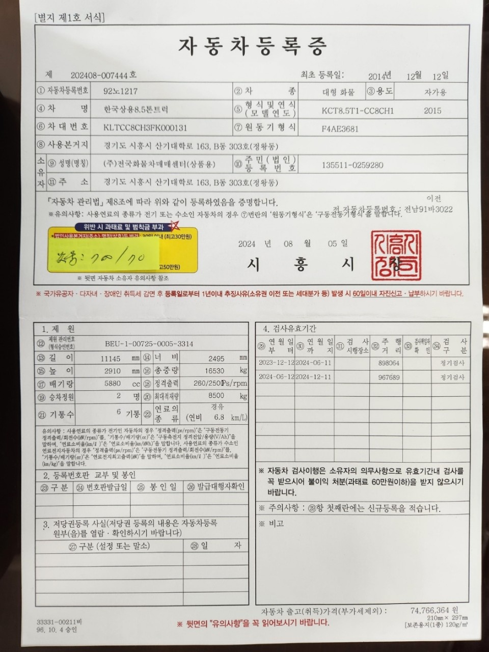 | 사고유무 | 무사고 |