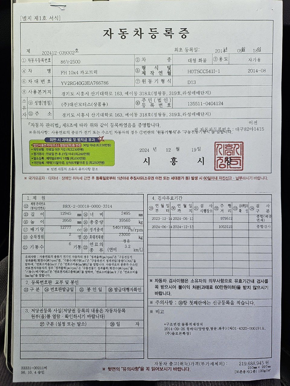 ◆◆ 주요제원 및 옵션 상세설명 ◆◆ ※ 제시신고번호 : 20241565367 ■ 차명 : 볼보FH후축25톤윙바디 ■ 차량번호 : 86누2500 ■ 연식 : 2014년09월 ■ 주행거리 : 109만km ■ 오토,10m30*2m54*2m40,540마력 ■ 압류 및 저당 없음 ■ 매매알선(대신) ♡ 정직과 신용을 최우선으로 생각합니다. ♡ 최고 보다는 고객님에게 최선을 다 하는 딜러가 되고자 합니다. ♡ 고객님의 편의를 위하여 휴일에도 근무하오니 언제든지 전화주십시요. ♡ 대차 / 캐피탈할부가능합니다. ♡ 안전 운행하시고 돈 많이 많이 버십시요. ♡ 화물차 전문 딜러 ☎010 8957 2066 이 병 철. ★ 사업자 등록번호 : 232-81-04733 주식회사 천지 ★ 자동차관리사업 등록번호 : 02-4123-000373 ★ 자동차 매매 사원증 번호 : GC23-02032 ▶ 오시는 길 ◀ 사무실 주소: 경기도 화성시 화성로 607-1 차고지 주소: 경기도 화성시 삼존로 133 |