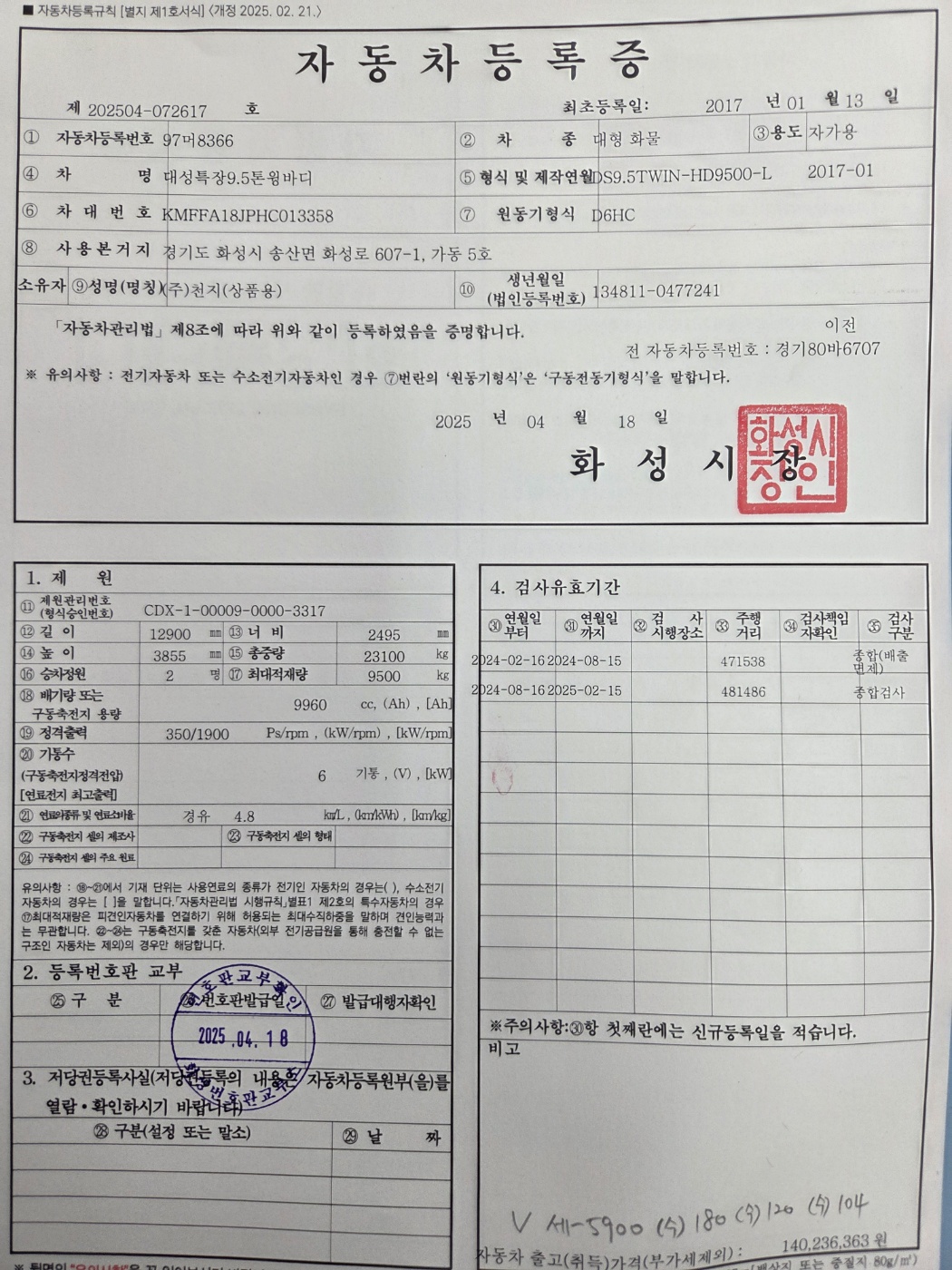 ◆◆ 주요제원 및 옵션 상세설명 ◆◆ ※ 제시신고번호 : 20251187427 ■ 차명 : 엑시언트후축9.5톤윙바디 ■ 차량번호 : 97머8366 ■ 연식 : 2017년01월 ■ 주행거리 : 49만km ■ 스틱.길이10m10,350마력 ■ 압류 및 저당 없음 ♡ 정직과 신용을 최우선으로 생각합니다. ♡ 최고 보다는 고객님에게 최선을 다 하는 딜러가 되고자 합니다. ♡ 고객님의 편의를 위하여 휴일에도 근무하오니 언제든지 전화주십시요. ♡ 대차 / 캐피탈할부가능합니다. ♡ 안전 운행하시고 돈 많이 많이 버십시요. ♡ 화물차 전문 딜러 ☎010 8957 2066 이 병 철. ★ 사업자 등록번호 : 232-81-04733 주식회사 천지 ★ 자동차관리사업 등록번호 : 02-4123-000373 ★ 자동차 매매 사원증 번호 : GC23-02032 ▶ 오시는 길 ◀ 사무실 주소: 경기도 화성시 화성로 607-1 차고지 주소: 경기도 화성시 삼존로 133 |