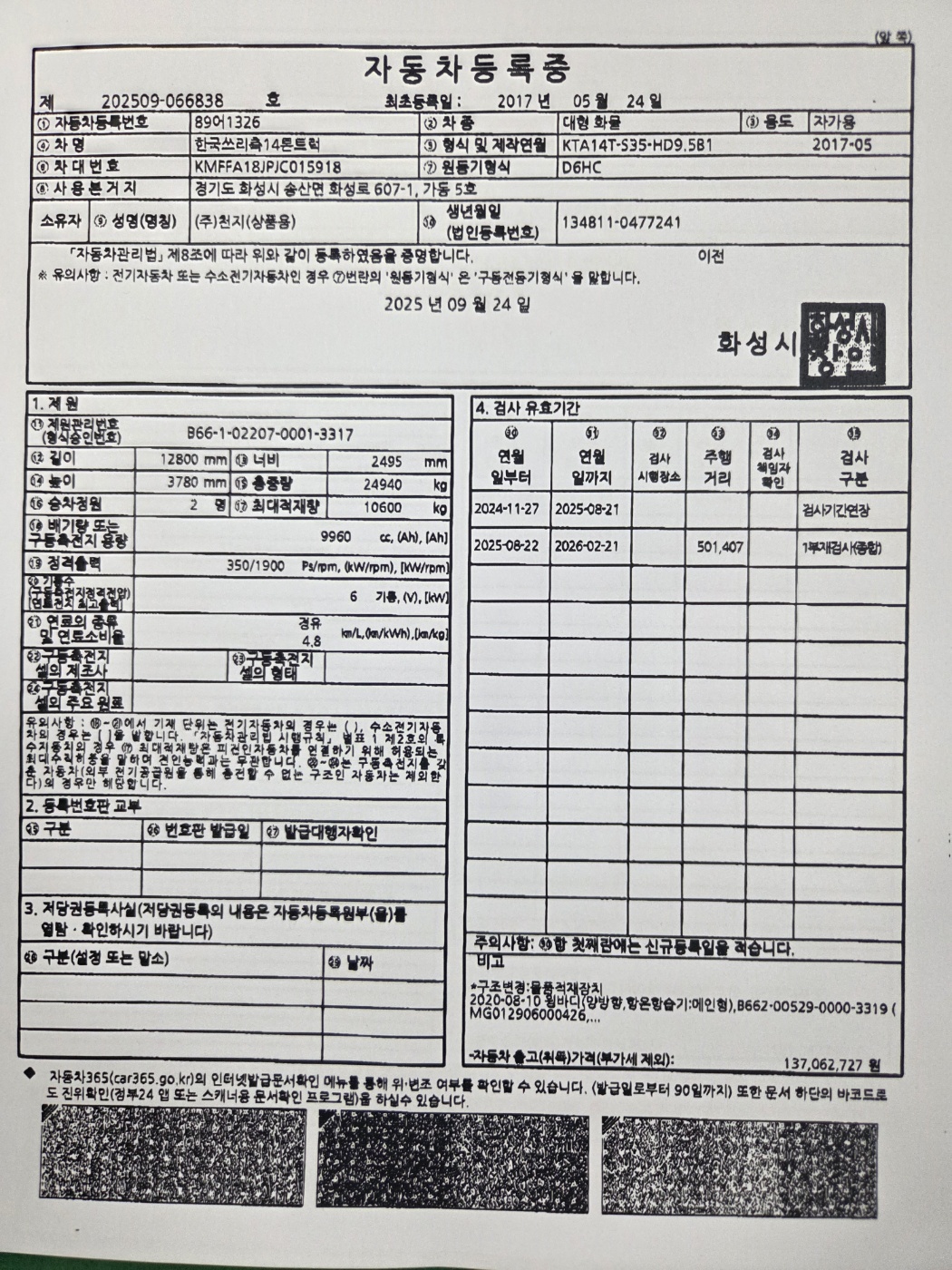 ◆◆ 주요제원 및 옵션 상세설명 ◆◆ ※ 제시신고번호 : 20251466749 ■ 차명 : 엑시언트후축9.5톤냉장윙바디 ■ 차량번호 : 89어1326 ■ 연식 : 2017년05월 ■ 주행거리 : 50만km ■ 14t승인.스틱.10m*2m60*2m40.350마력 ■ 압류 및 저당 없음 ♡ 정직과 신용을 최우선으로 생각합니다. ♡ 최고 보다는 고객님에게 최선을 다 하는 딜러가 되고자 합니다. ♡ 고객님의 편의를 위하여 휴일에도 근무하오니 언제든지 전화주십시요. ♡ 대차 / 캐피탈할부가능합니다. ♡ 안전 운행하시고 돈 많이 많이 버십시요. ♡ 화물차 전문 딜러 ☎010 8957 2066 이 병 철. ★ 사업자 등록번호 : 232-81-04733 주식회사 천지 ★ 자동차관리사업 등록번호 : 02-4123-000373 ★ 자동차 매매 사원증 번호 : GC25-02524 ▶ 오시는 길 ◀ 사무실 주소: 경기도 화성시 화성로 607-1 차고지 주소: 경기도 화성시 삼존로 133 |