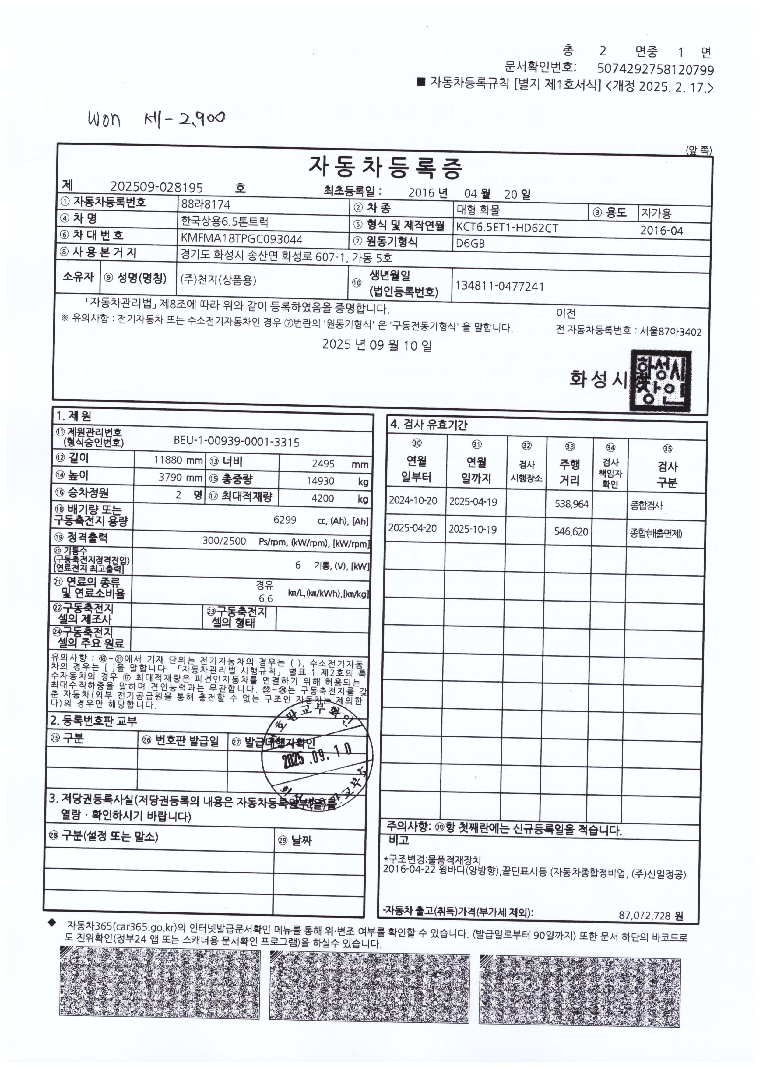 ◆◆ 주요제원 및 옵션 상세설명 ◆◆ ※ 제시신고번호 : 20251441753 ■ 차명 : 와이드캡후축6.5톤윙바디 ■ 차량번호 : 88라8174 ■ 연식 : 2016년04월 ■ 주행거리 : 54만km ■ 9m40*2m50*2m40.300마력 ■ 압류 및 저당 없음 ♡ 정직과 신용을 최우선으로 생각합니다. ♡ 최고 보다는 고객님에게 최선을 다 하는 딜러가 되고자 합니다. ♡ 고객님의 편의를 위하여 휴일에도 근무하오니 언제든지 전화주십시요. ♡ 대차 / 캐피탈할부가능합니다. ♡ 안전 운행하시고 돈 많이 많이 버십시요. ♡ 화물차 전문 딜러 ☎010 8957 2066 이 병 철. ★ 사업자 등록번호 : 232-81-04733 주식회사 천지 ★ 자동차관리사업 등록번호 : 02-4123-000373 ★ 자동차 매매 사원증 번호 : GC25-02524 ▶ 오시는 길 ◀ 사무실 주소: 경기도 화성시 화성로 607-1 차고지 주소: 경기도 화성시 삼존로 133 |