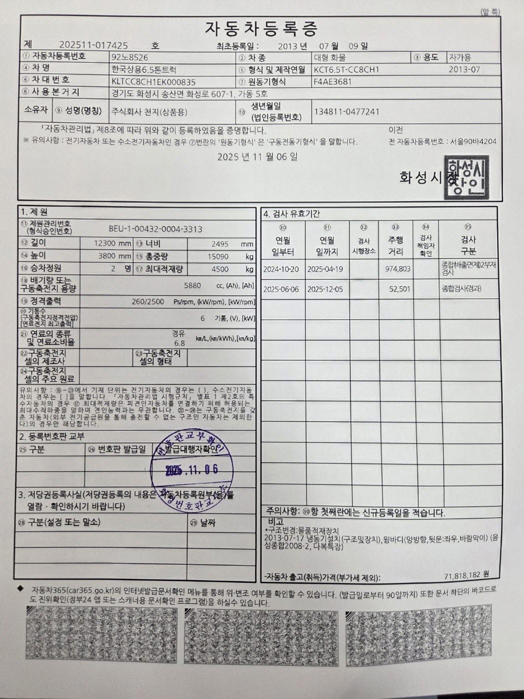연식 / 톤수 2013년 07월 / 6.5 톤