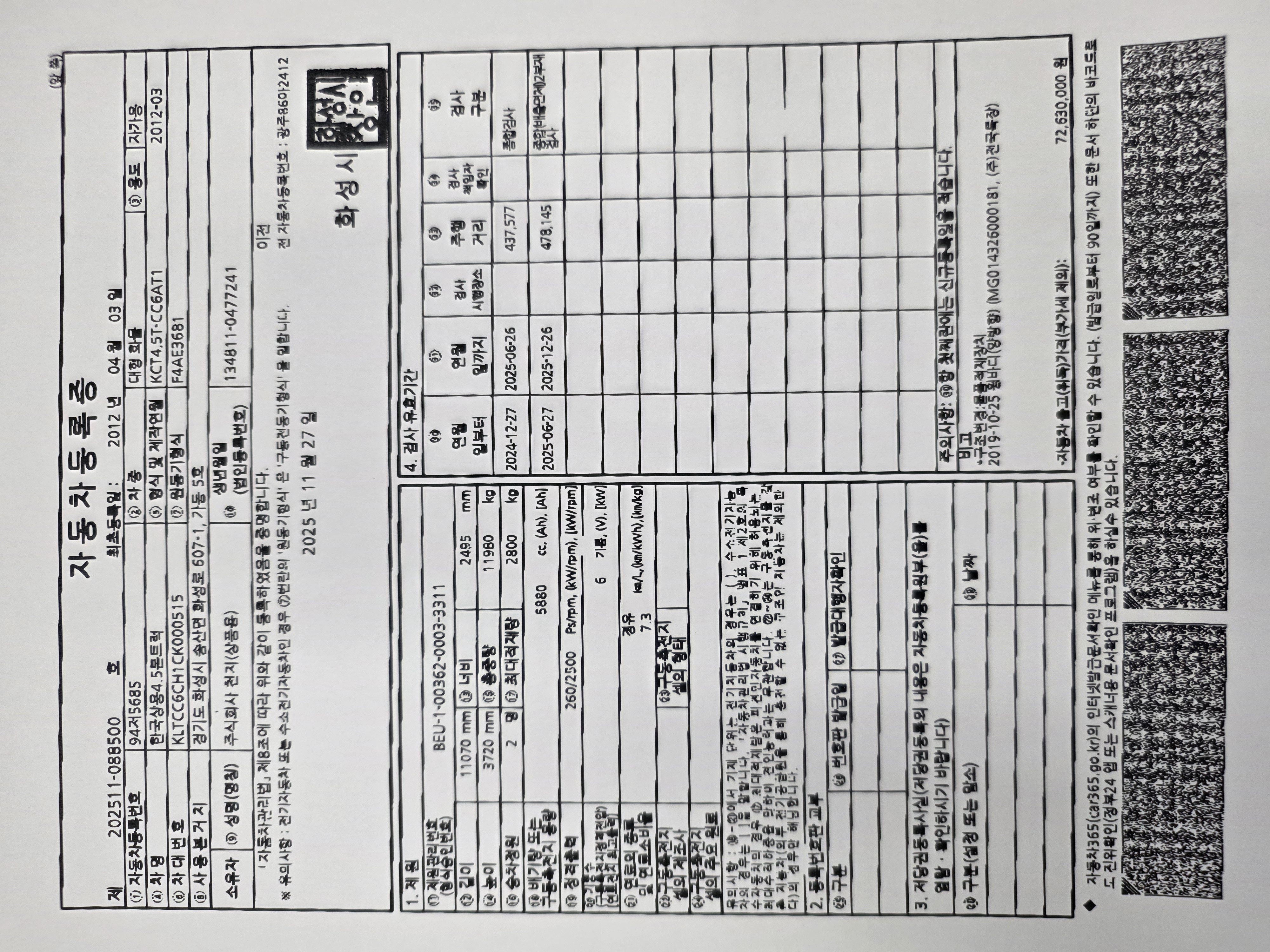◆◆ 주요제원 및 옵션 상세설명 ◆◆ ※ 제시신고번호 : 20251581396 ■ 차명 : 노부스후축4.5톤윙바디 ■ 차량번호 : 94저5685 ■ 연식 : 2012년04월 ■ 주행거리 : 48만km ■ 8m50*2m50*2m40.260마력 ■ 압류 및 저당 없음 ♡ 정직과 신용을 최우선으로 생각합니다. ♡ 최고 보다는 고객님에게 최선을 다 하는 딜러가 되고자 합니다. ♡ 고객님의 편의를 위하여 휴일에도 근무하오니 언제든지 전화주십시요. ♡ 대차 / 캐피탈할부가능합니다. ♡ 안전 운행하시고 돈 많이 많이 버십시요. ♡ 화물차 전문 딜러 ☎010 8957 2066 이 병 철. ★ 사업자 등록번호 : 232-81-04733 주식회사 천지 ★ 자동차관리사업 등록번호 : 02-4123-000373 ★ 자동차 매매 사원증 번호 : GC25-02524 ▶ 오시는 길 ◀ 사무실 주소: 경기도 화성시 화성로 607-1 차고지 주소: 경기도 화성시 삼존로 133 |