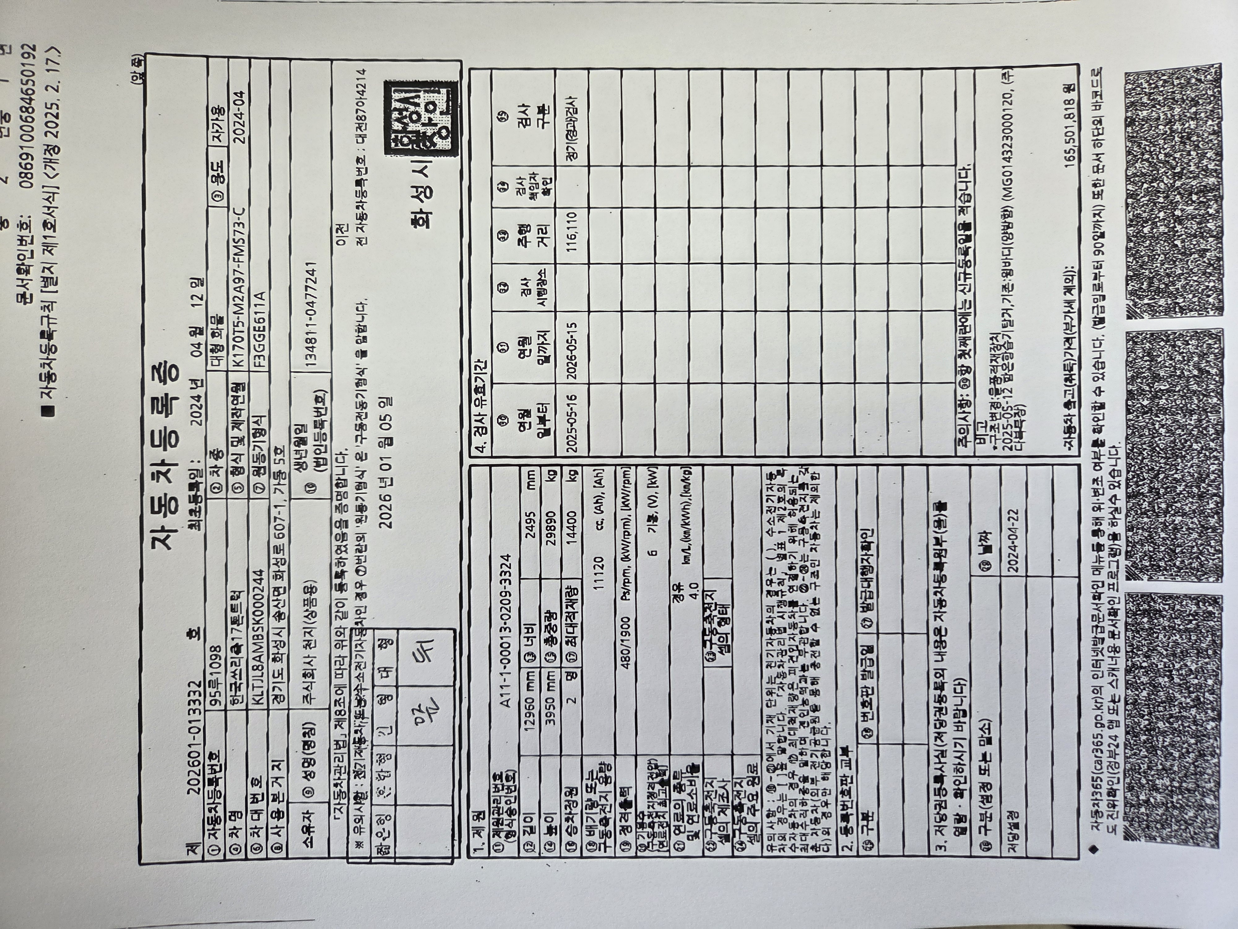 연식 / 톤수 2024년 04월 / 17 톤