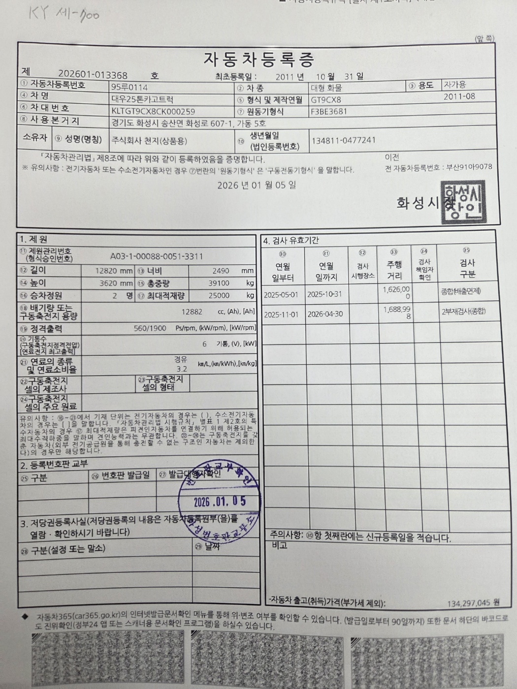 ◆◆ 주요제원 및 옵션 상세설명 ◆◆ ※ 제시신고번호 : 20261002950 ■ 차명 : 프리마25톤앞축카고 ■ 차량번호 : 95루0114 ■ 연식 : 2011년10월 ■ 주행거리 : 170만km ■ 보링,오토,리타드,560마력 ■ 압류 및 저당 없음 ♡ 정직과 신용을 최우선으로 생각합니다. ♡ 최고 보다는 고객님에게 최선을 다 하는 딜러가 되고자 합니다. ♡ 고객님의 편의를 위하여 휴일에도 근무하오니 언제든지 전화주십시요. ♡ 대차 / 캐피탈할부가능합니다. ♡ 안전 운행하시고 돈 많이 많이 버십시요. ♡ 화물차 전문 딜러 ☎010 8957 2066 이 병 철. ★ 사업자 등록번호 : 232-81-04733 주식회사 천지 ★ 자동차관리사업 등록번호 : 02-4123-000373 ★ 자동차 매매 사원증 번호 : GC25-02524 ▶ 오시는 길 ◀ 사무실 주소: 경기도 화성시 화성로 607-1 차고지 주소: 경기도 화성시 삼존로 133 |