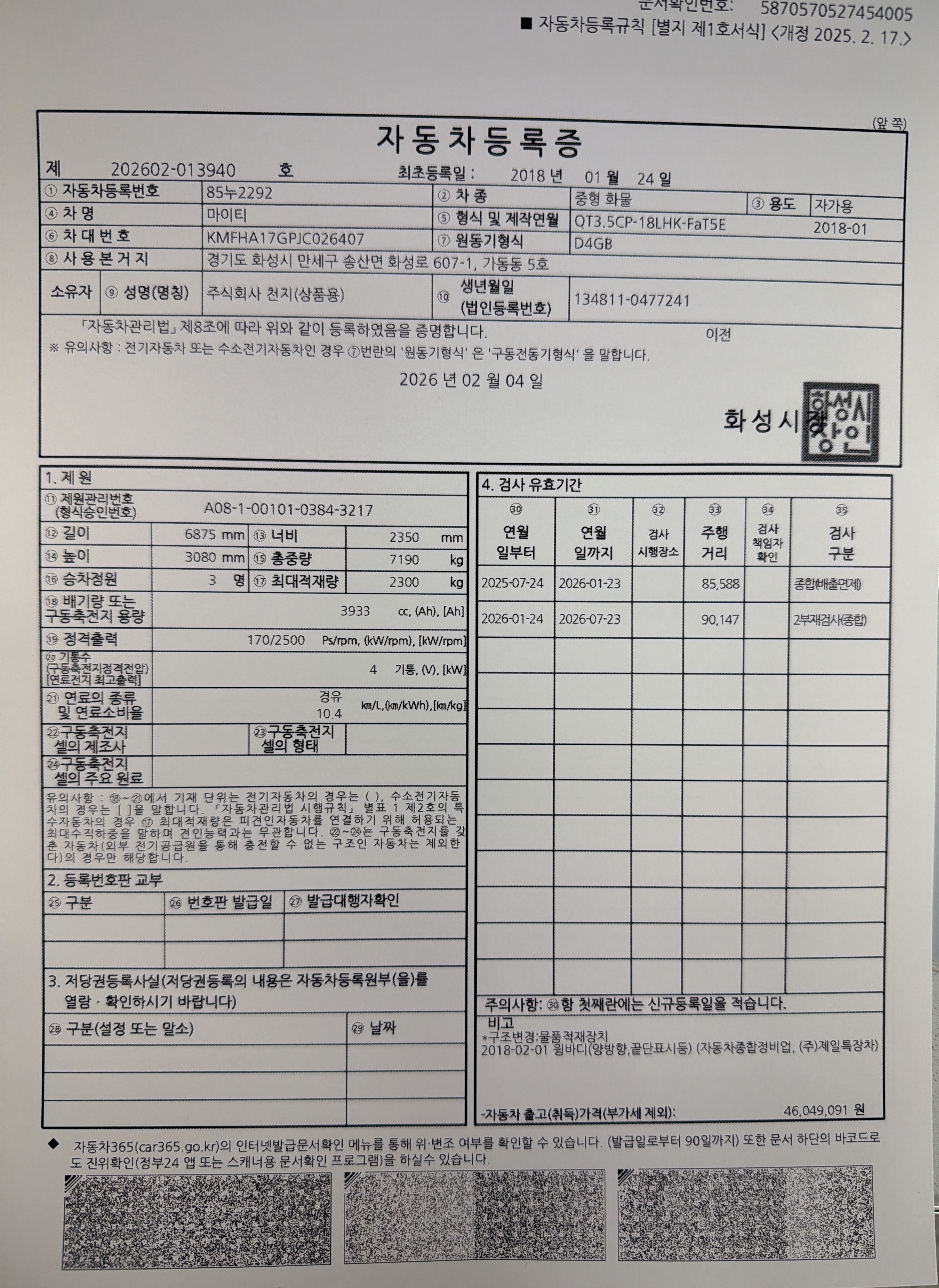 ◆◆ 주요제원 및 옵션 상세설명 ◆◆ ※ 제시신고번호 : 20261057464 ■ 차명 : 올뉴마이티3.5톤윙바디 ■ 차량번호 : 85누2292 ■ 연식 : 2018년01월 ■ 주행거리 : 9만km ■ 슈퍼캡,4m50*2m10*2m24(광폭),170마력 ■ 압류 및 저당 없음 ♡ 정직과 신용을 최우선으로 생각합니다. ♡ 최고 보다는 고객님에게 최선을 다 하는 딜러가 되고자 합니다. ♡ 고객님의 편의를 위하여 휴일에도 근무하오니 언제든지 전화주십시요. ♡ 대차 / 캐피탈할부가능합니다. ♡ 안전 운행하시고 돈 많이 많이 버십시요. ♡ 화물차 전문 딜러 ☎010 8957 2066 이 병 철. ★ 사업자 등록번호 : 232-81-04733 주식회사 천지 ★ 자동차관리사업 등록번호 : 02-4123-000373 ★ 자동차 매매 사원증 번호 : GC25-02524 ▶ 오시는 길 ◀ 사무실 주소: 경기도 화성시 화성로 607-1 차고지 주소: 경기도 화성시 삼존로 133 |