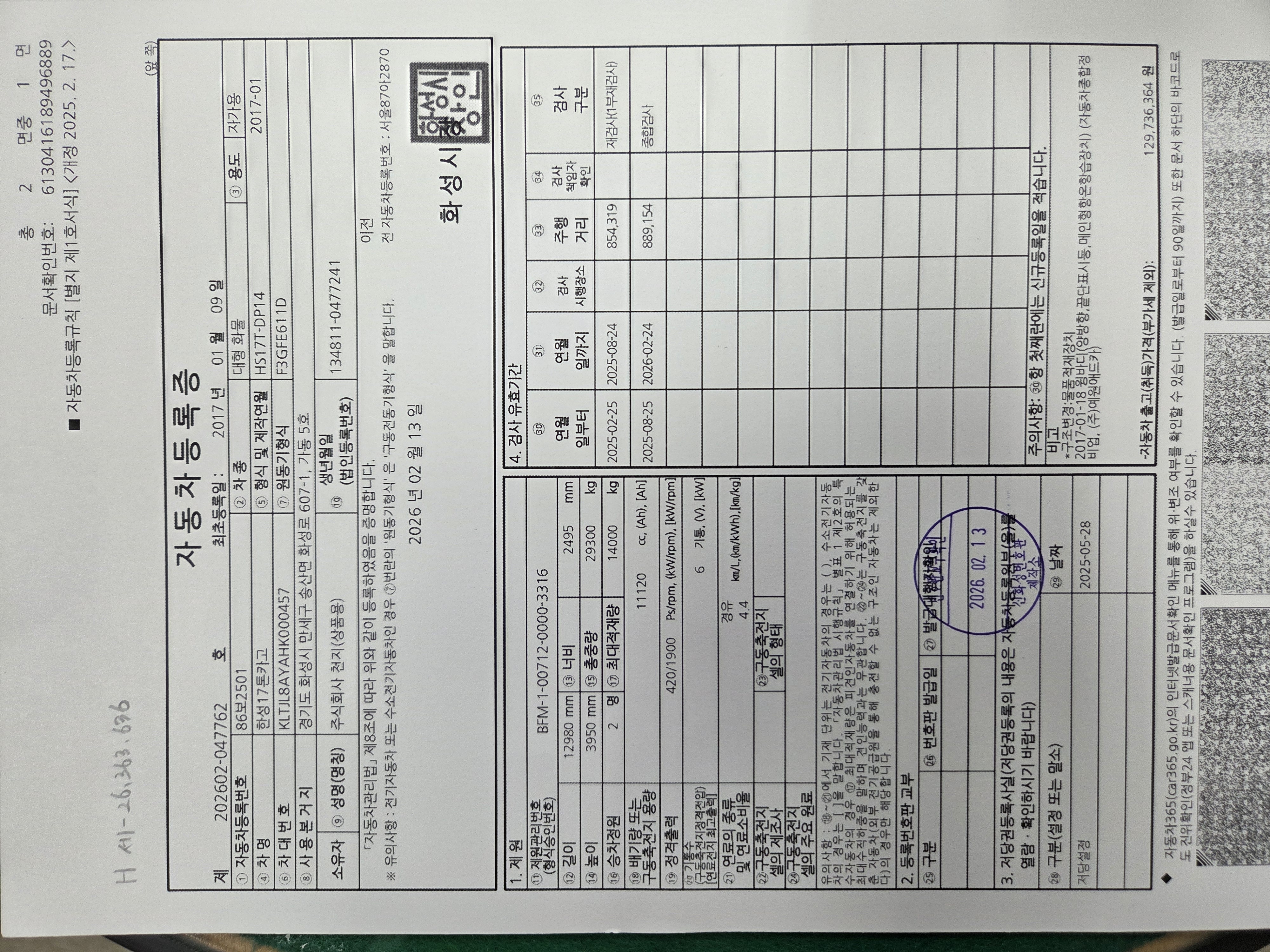 ■ 차량번호 :  86보2501
