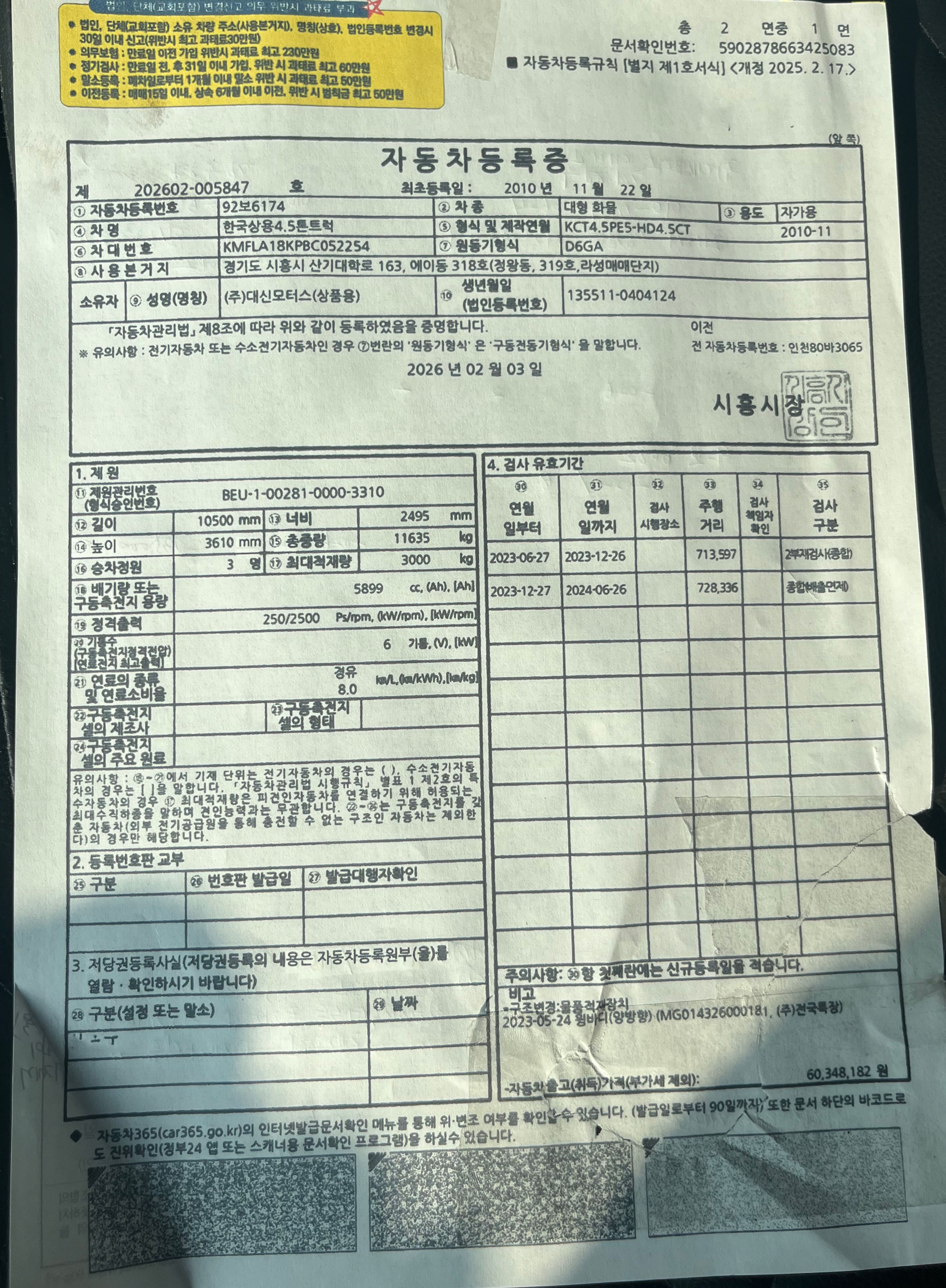 연식 / 톤수 2010년 11월 / 4.5 톤