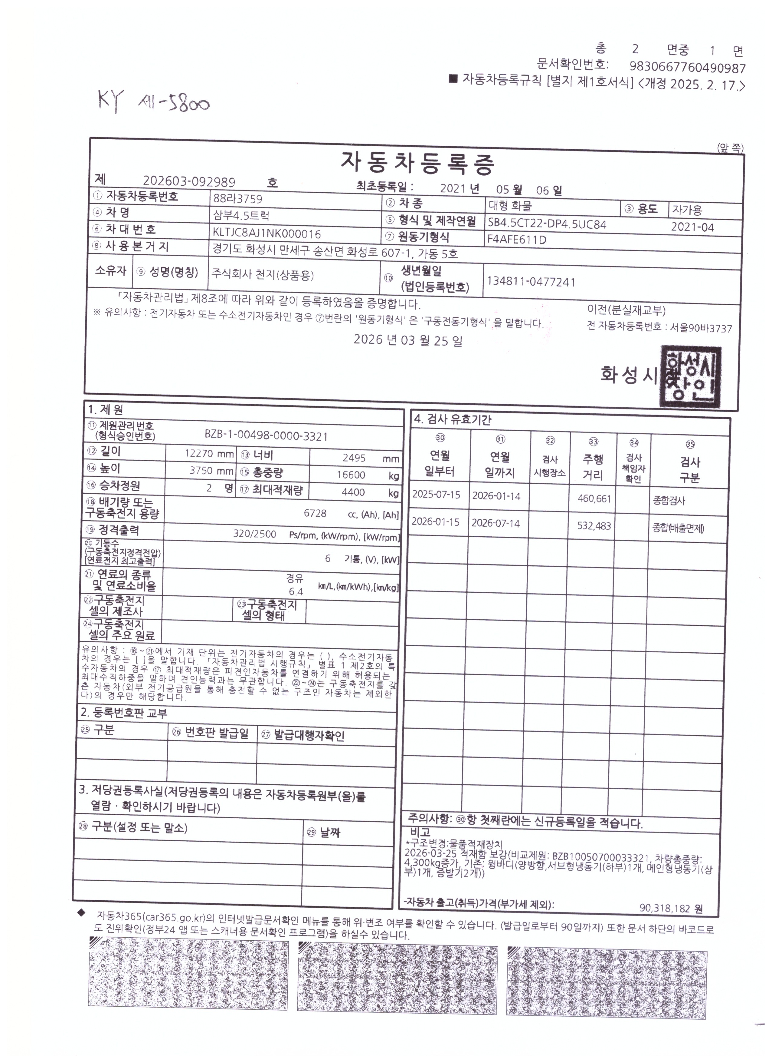 ◆◆ 주요제원 및 옵션 상세설명 ◆◆ ※ 제시신고번호 : 20261128241 ■ 차명 : 프리마후축4.5톤써브냉동윙바디 ■ 차량번호 : 88라3759 ■ 연식 : 2021년05월 ■ 주행거리 : 55만km ■ 고하중,완바디,9m40*2m50*2m40,320마력 ■ 압류 및 저당 없음 ■ 매매알선(천지) ♡ 정직과 신용을 최우선으로 생각합니다. ♡ 최고 보다는 고객님에게 최선을 다 하는 딜러가 되고자 합니다. ♡ 고객님의 편의를 위하여 휴일에도 근무하오니 언제든지 전화주십시요. ♡ 대차 / 캐피탈할부가능합니다. ♡ 안전 운행하시고 돈 많이 많이 버십시요. ♡ 화물차 전문 딜러 ☎010 8957 2066 이 병 철. ★ 사업자 등록번호 : 232-81-04733 주식회사 천지 ★ 자동차관리사업 등록번호 : 02-4123-000373 ★ 자동차 매매 사원증 번호 : GC25-02524 ▶ 오시는 길 ◀ 사무실 주소: 경기도 화성시 화성로 607-1 차고지 주소: 경기도 화성시 삼존로 133 |