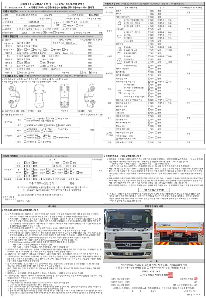 ◆◆ 주요제원 및 옵션 상세설명 ◆◆ ※ 제시신고번호 : 20261141494 ■ 차명 : 와이드캡6.5톤후축카고 ■ 차량번호 : 83두6501 ■ 연식 : 2017년07월 ■ 주행거리 : 35만km ■ 하이로우8단,길이8m30,300마력 ■ 압류 및 저당 없음 ■ 매매알선(천지) ♡ 정직과 신용을 최우선으로 생각합니다. ♡ 최고 보다는 고객님에게 최선을 다 하는 딜러가 되고자 합니다. ♡ 고객님의 편의를 위하여 휴일에도 근무하오니 언제든지 전화주십시요. ♡ 대차 / 캐피탈할부가능합니다. ♡ 안전 운행하시고 돈 많이 많이 버십시요. ♡ 화물차 전문 딜러 ☎010 8957 2066 이 병 철. ★ 사업자 등록번호 : 232-81-04733 주식회사 천지 ★ 자동차관리사업 등록번호 : 02-4123-000373 ★ 자동차 매매 사원증 번호 : GC25-02524 ▶ 오시는 길 ◀ 사무실 주소: 경기도 화성시 화성로 607-1 차고지 주소: 경기도 화성시 삼존로 133 |
