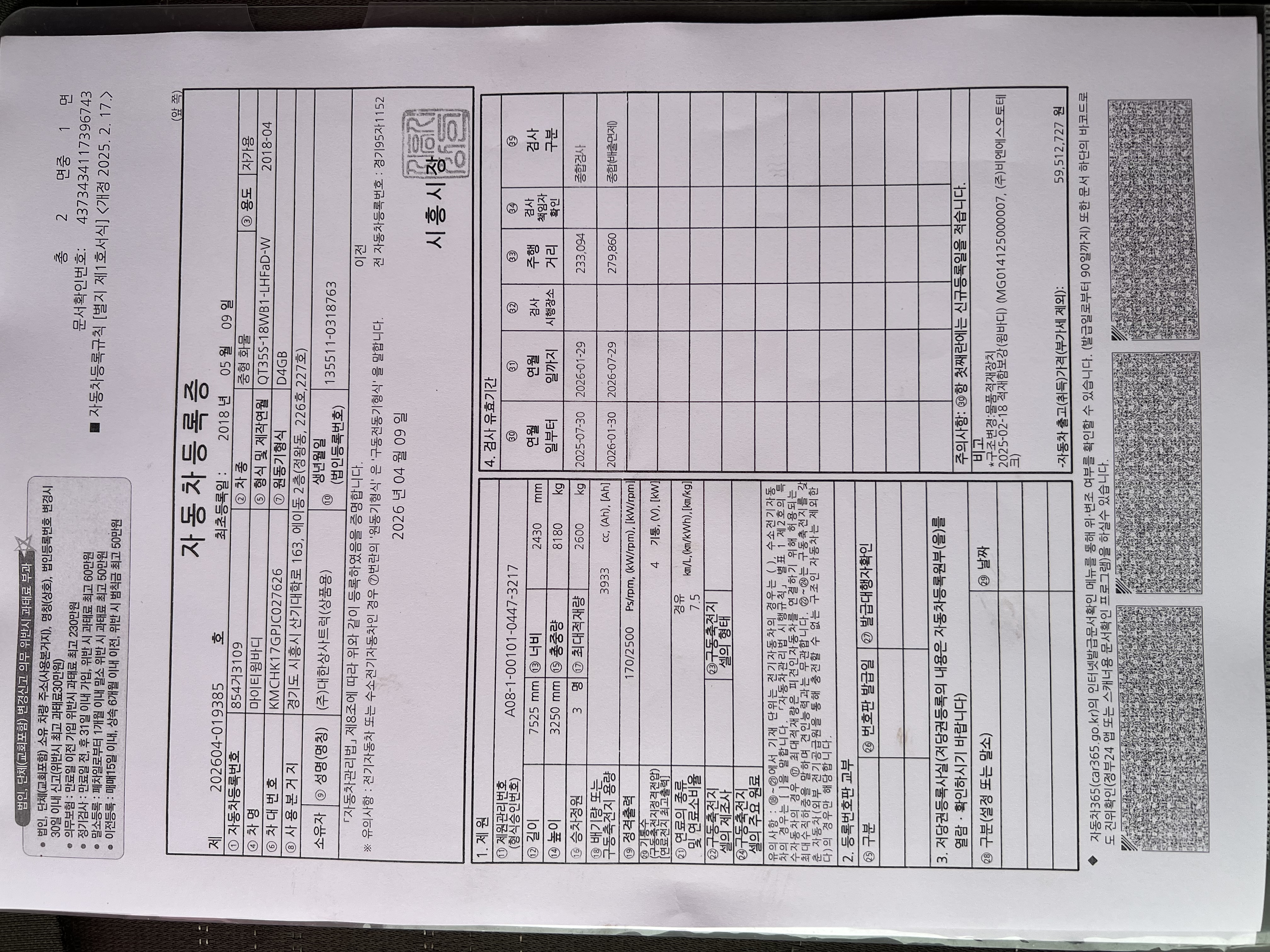 ◆◆ 주요제원 및 옵션 상세설명 ◆◆ ※ 제시신고번호 : 20261173608 ■ 차명 : 올뉴마이티3.5톤윙바디 ■ 차량번호 : 854거3109 ■ 연식 : 2018년05월 ■ 주행거리 : 28만km ■ 캐빈교환,슈퍼캡,5m07*2m18*2m28,170마력 ■ 압류 및 저당 없음 ■ 매매알선(천지) ♡ 정직과 신용을 최우선으로 생각합니다. ♡ 최고 보다는 고객님에게 최선을 다 하는 딜러가 되고자 합니다. ♡ 고객님의 편의를 위하여 휴일에도 근무하오니 언제든지 전화주십시요. ♡ 대차 / 캐피탈할부가능합니다. ♡ 안전 운행하시고 돈 많이 많이 버십시요. ♡ 화물차 전문 딜러 ☎010 8957 2066 이 병 철. ★ 사업자 등록번호 : 232-81-04733 주식회사 천지 ★ 자동차관리사업 등록번호 : 02-4123-000373 ★ 자동차 매매 사원증 번호 : GC25-02524 ▶ 오시는 길 ◀ 사무실 주소: 경기도 화성시 화성로 607-1 차고지 주소: 경기도 화성시 삼존로 133 |
